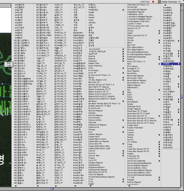 일러스트에서 폰트목록 병풍처럼 보기...